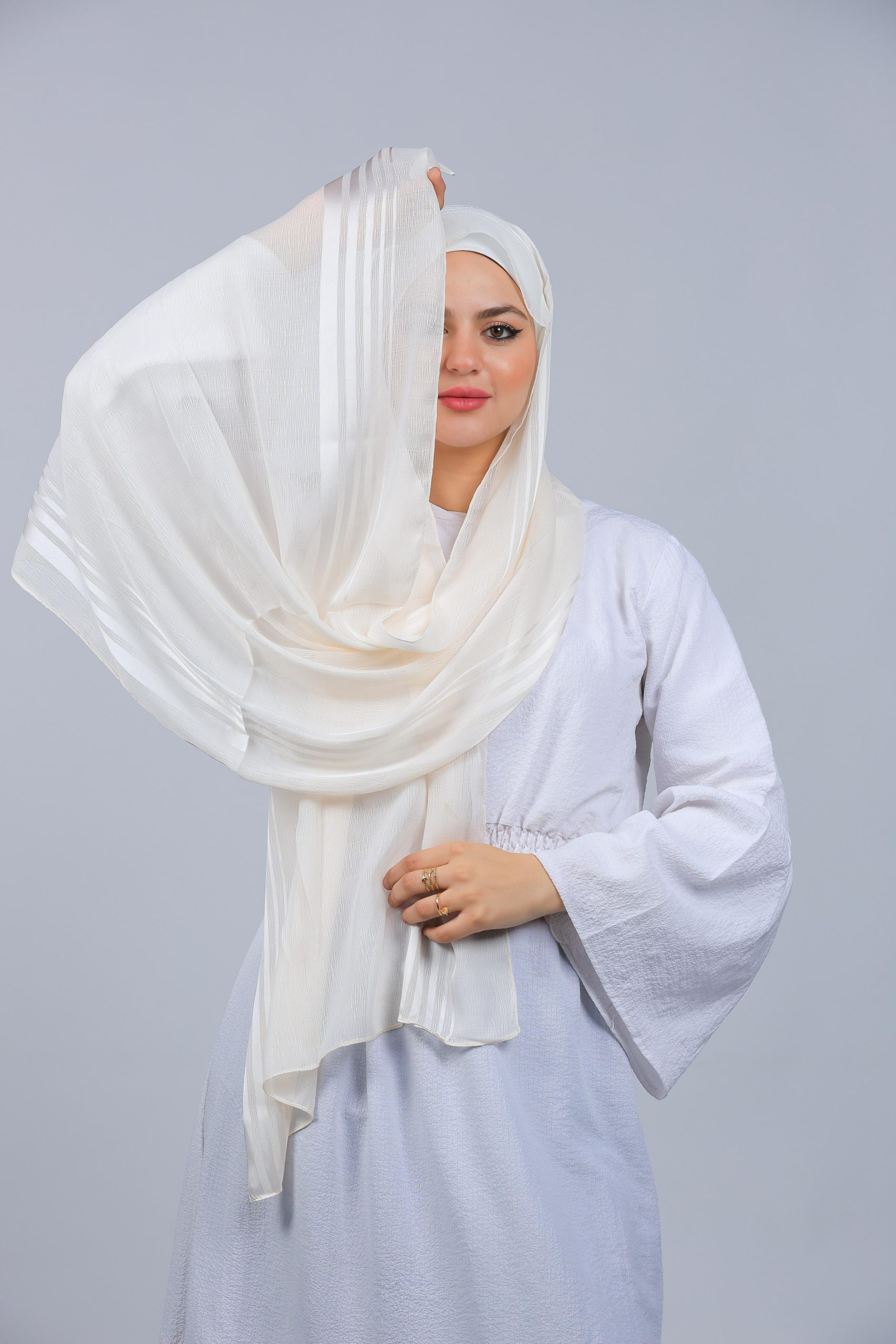 A stylish chiffon scarf with a soft satin finish, offering a chic balance of texture and elegance. Perfect for everyday wear and special occasions.